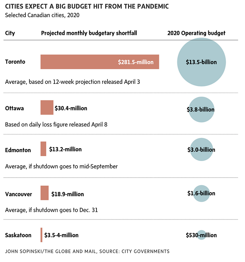 Cities are not allowed to run deficits in Canada, and, announcements in British Columbia this week notwithstanding, this is clearly a massive problem in the context of COVID19. The perfect storm of declining revenues, limited revenue streams, and growing expenses make a balanced budget either a practical impossibility, or an exercise in human misery.