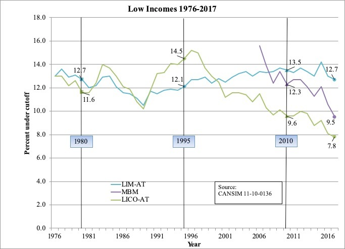 Use of the Low Income Measure (LIM) would suggest that poverty in Canada has seen mild fluctuations since the mid-1990s.