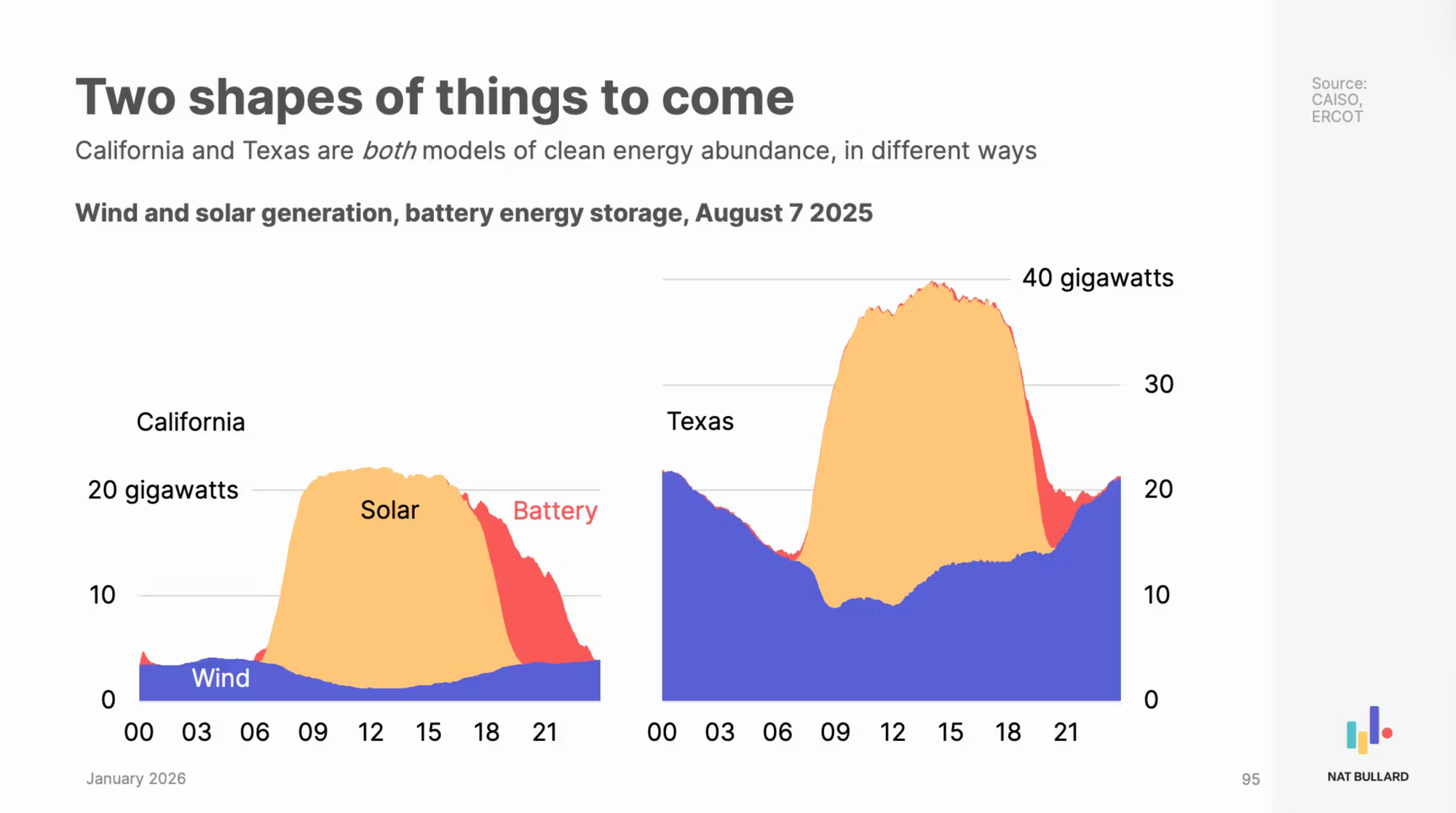 Even in global energy transition discourse, it's hard to think of two places that dominante the airwaves more than Texas and California (though, thankfully, Pakistan has now entered the chat). They're perfect foils for one another and they are the prism through which many American culture war issues are read. But as Bullard expertly pulls from the data from the arcane electricity systems operators (ERCOT and CAISO), these two states actually represent a convergence: building more renewable enegy is a winning economic proposition.