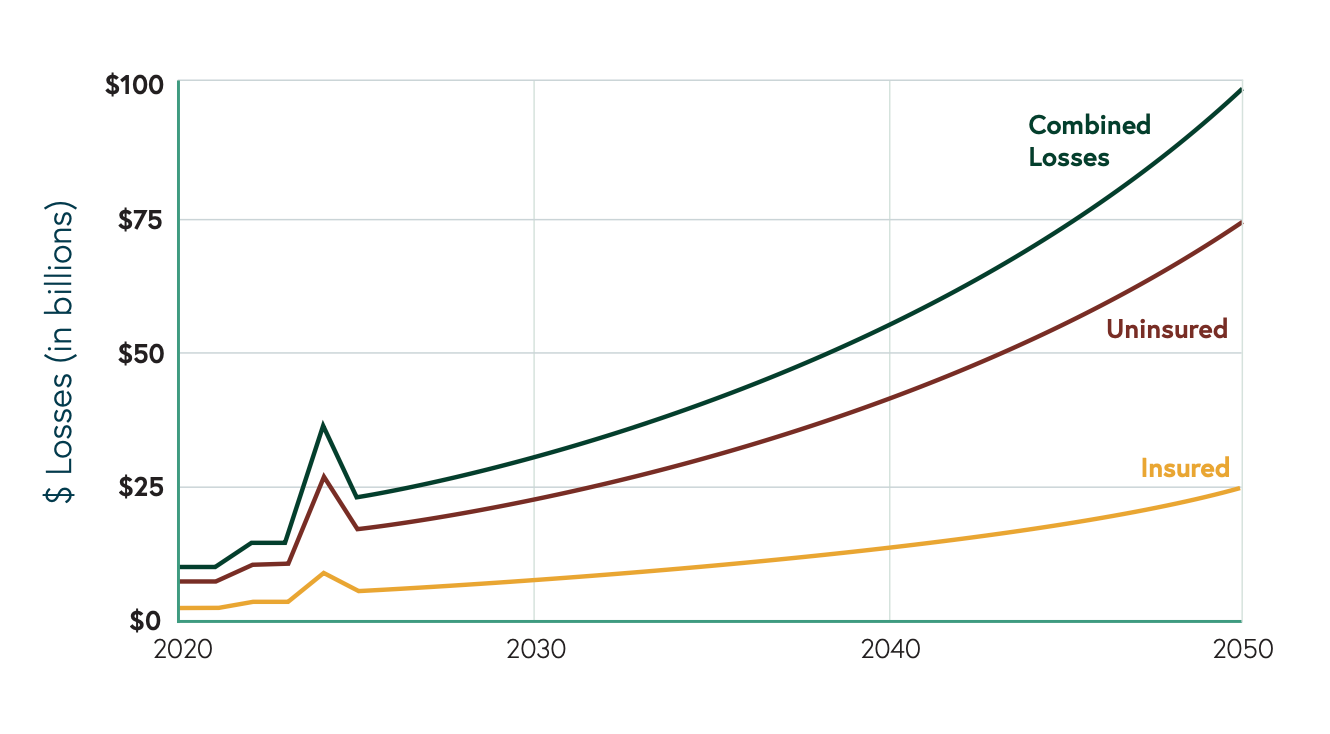 For those who follow the world of climate damages, the high-level numbers aren't new, but starkly and clearly stated: if you extrapolate out the current growth rate in climate-related damages, Canada could be looking at $100 billion a year by 2050 – frighteningly, with $75 billion of that coming from uninsured assets.
