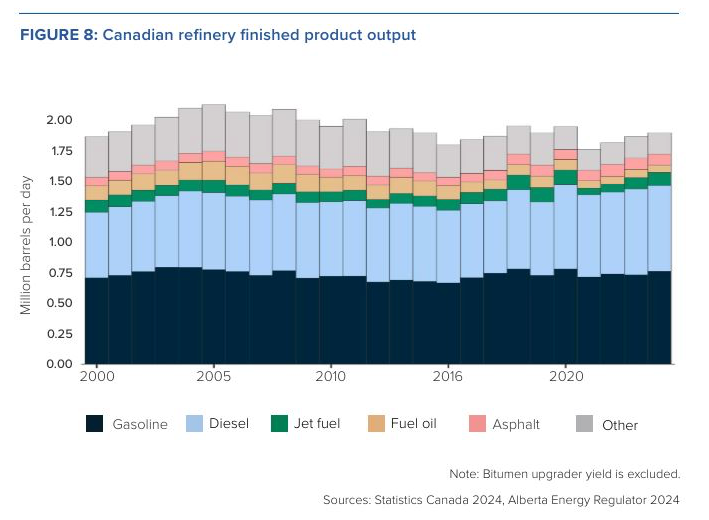 Because Canadian refineries are mostly for our own domestic fuels consumption - already expected to decline under business-as-usual measures - the desire of these facilities will likely wane, as has been predicted by the Canadian Energy Regulator. This means that, in the IEA scenario, Canadian producers have a smaller domestic market for refined fuels and, if trends continue, face a greater and greater reliance on American refineries - and the prices they want to pay.