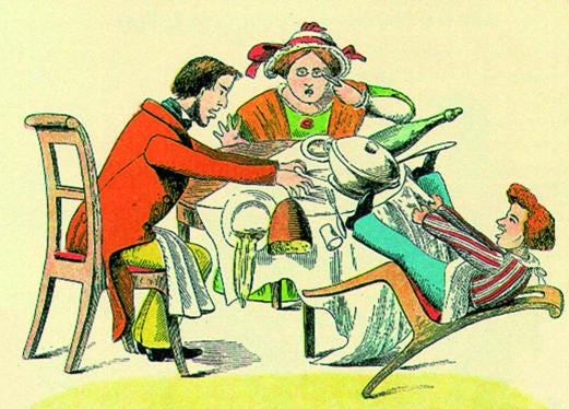 Another example is a 1845 children’s story written by a German doctor, Heinrich Hoffman, which speaks about a “Fidgety Phillip.” This tells a tale of a “naughty, restless child,” who breaks things and “screams with all his might” as he struggles to, as contemporary doctor’s might say, emotionally self-regulate.