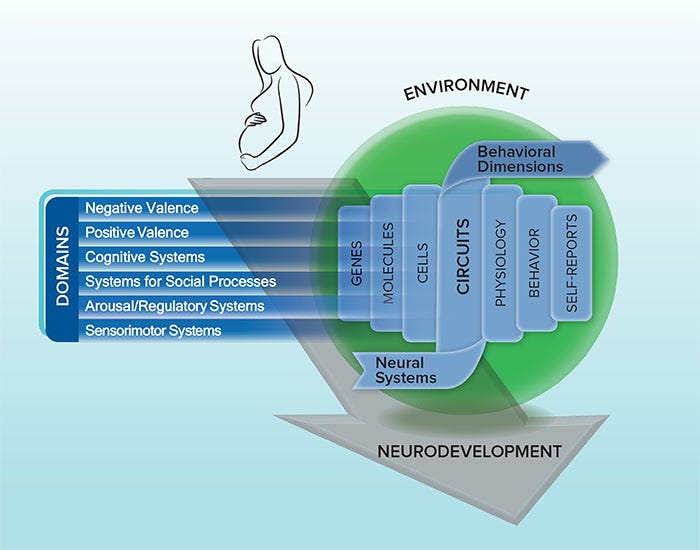 Something promising on this front is from the United States, called “Research Domain Criteria” (RDoC), which is an approach to studying mental illness was adopted by the National Institute of Health in 2010 and has some increasing sway in mental health research and practice. As NIH explains it, the RDoC “is a research framework for investigating mental disorders. It integrates many levels of information (from genomics and circuits to behavior and self-report) to explore basic dimensions of functioning that span the full range of human behavior from normal to abnormal.”