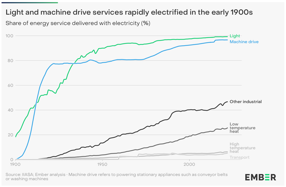 Though I often write about the positive implications of the transition from a fossil fuel-based to an electrically-powered future, I fundamentally view it in the same terms as Narayanan and Kapoor view AI (and on which I also agree). We are (still) in the middle of the "long march of electrification" that started in the 1900s and which is still filtering out over the whole of the global economy.