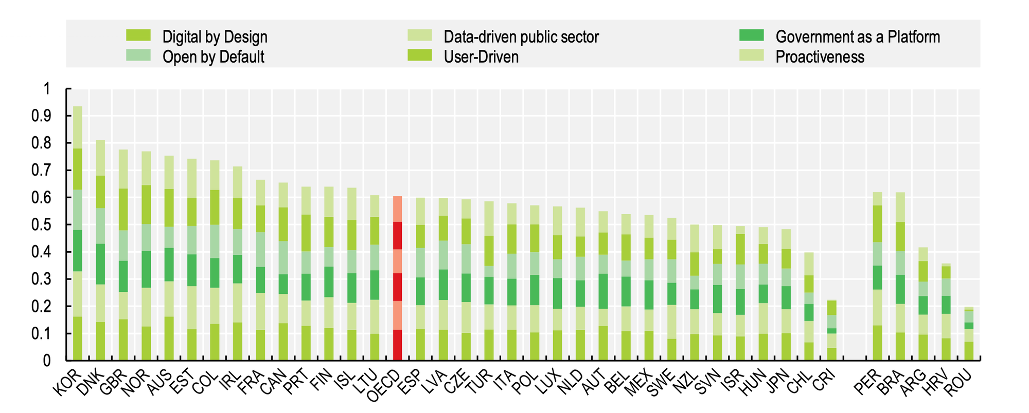 These growing challenges by the wealthy countries club, the OECD, which wrote in 2025 that, on average, OECD countries score 0.61 out of 1 on the Digital Government index. With the example of governments' big datasets, only 47% of member countries made their high-value data publicly accessible, with that number falling to 42% for health specifically, and just 37% in education.
