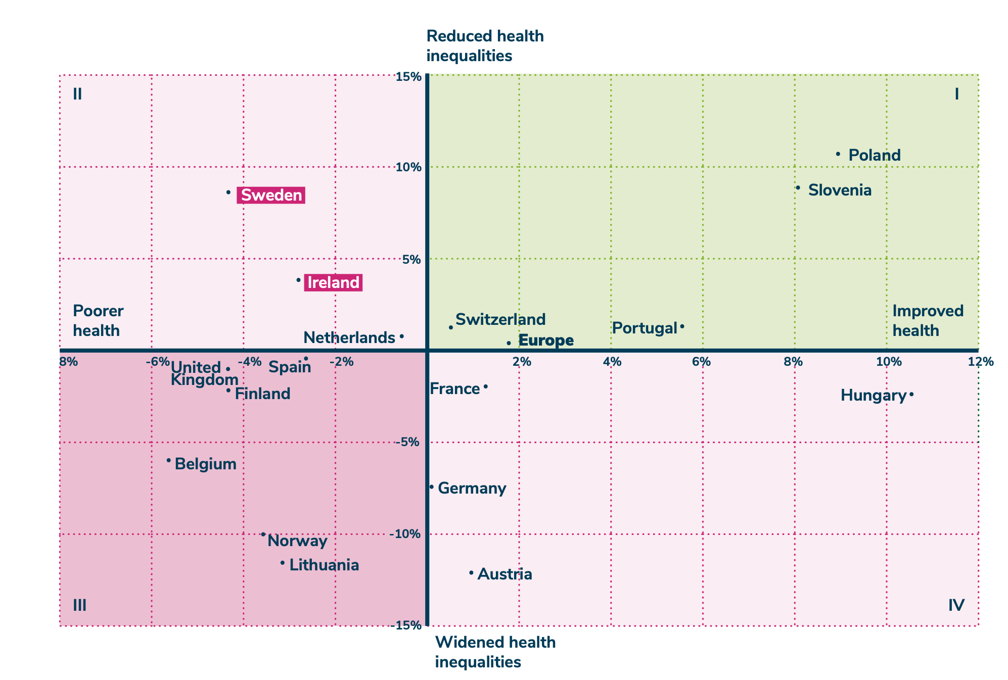 Despite spending more than ever on healthcare, both per person and in absolute terms, the "social determinants of health" are increasingly dragging down other major wins, such as decreasing maternal mortality. Increases in self-reported ill-health in the European Union show a slight bias towards wealthier countries, while poorer countries sometimes seem to be getting better.